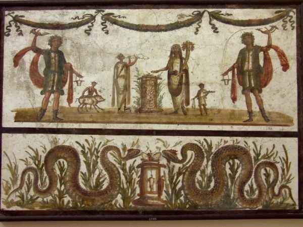 die Schlange symbolisiert den eigentlichen lar familiaris; vespasianisch)